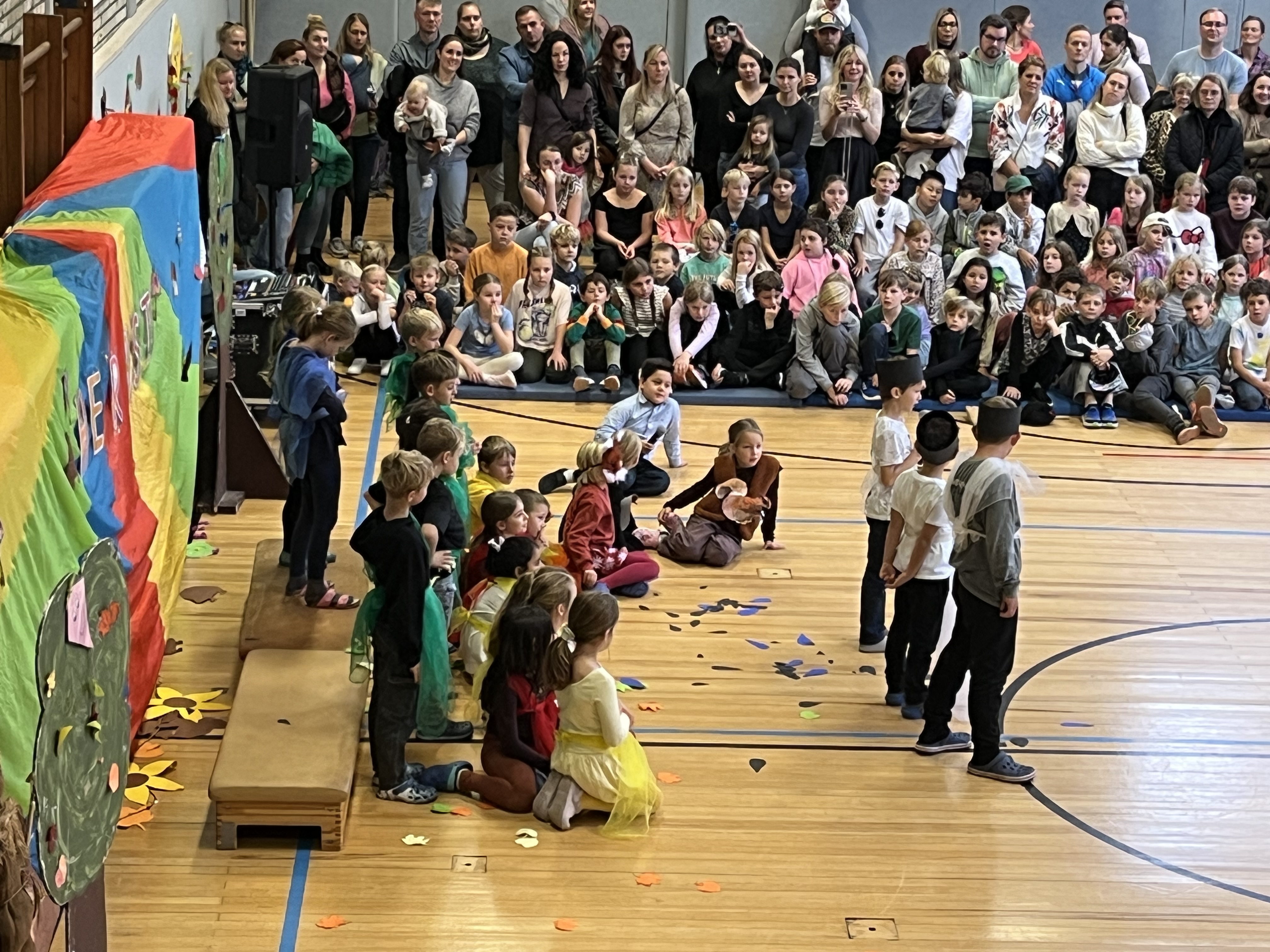 Am letzten Schultag vor den Herbstferien fand in unserer liebevoll geschmückten Turnhalle wieder unsere jährliche Herbstfeier statt – ein fröhlicher und bunter Höhepunkt im Schuljahr, auf den sich alle Kinder, Lehrer*innen, Erzieher*innen und Eltern jedes Jahr freuen.