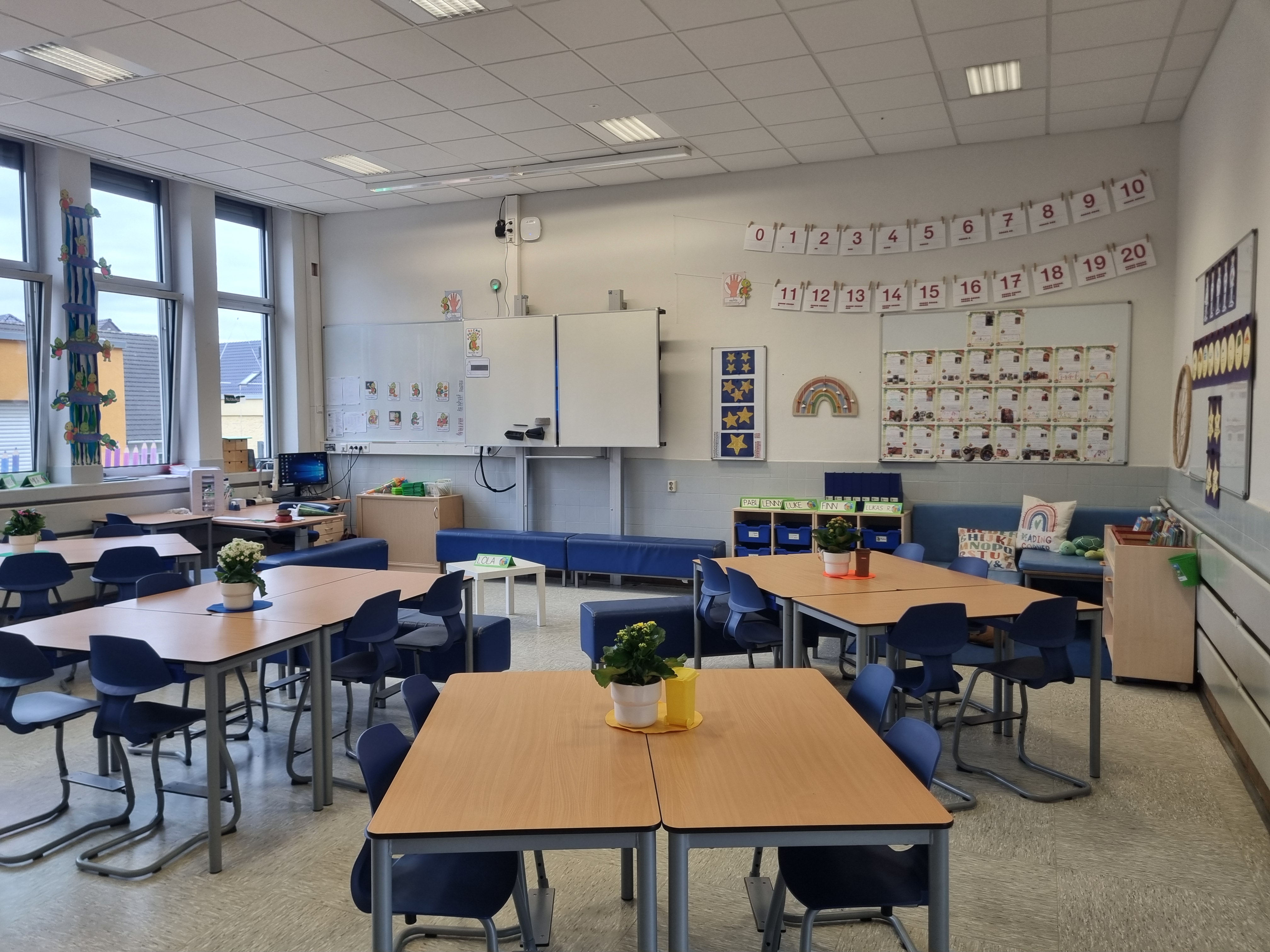 Weiter ging es mit einer musikalischen Begrüßung durch die Klasse 2b, die mit einem fröhlichen Lied für eine festliche Stimmung sorgte. Die 2a begeisterte Groß und Klein mit ihrem Theaterstück zum Kinderbuch „Der Ernst des Lebens“. Auch die Konrektorin, Frau Hibel, hieß gemeinsam mit der OGS-Leitung, Frau Liebgott, die neuen Schülerinnen und Schüler sowie ihre Eltern herzlich willkommen. Sie betonten, wie wichtig ein guter Start ins Schulleben ist und dass die Kinder an der Winrich-von-Kniprode-Schule in einer offenen, freundlichen und lernfreudigen Umgebung ankommen dürfen.