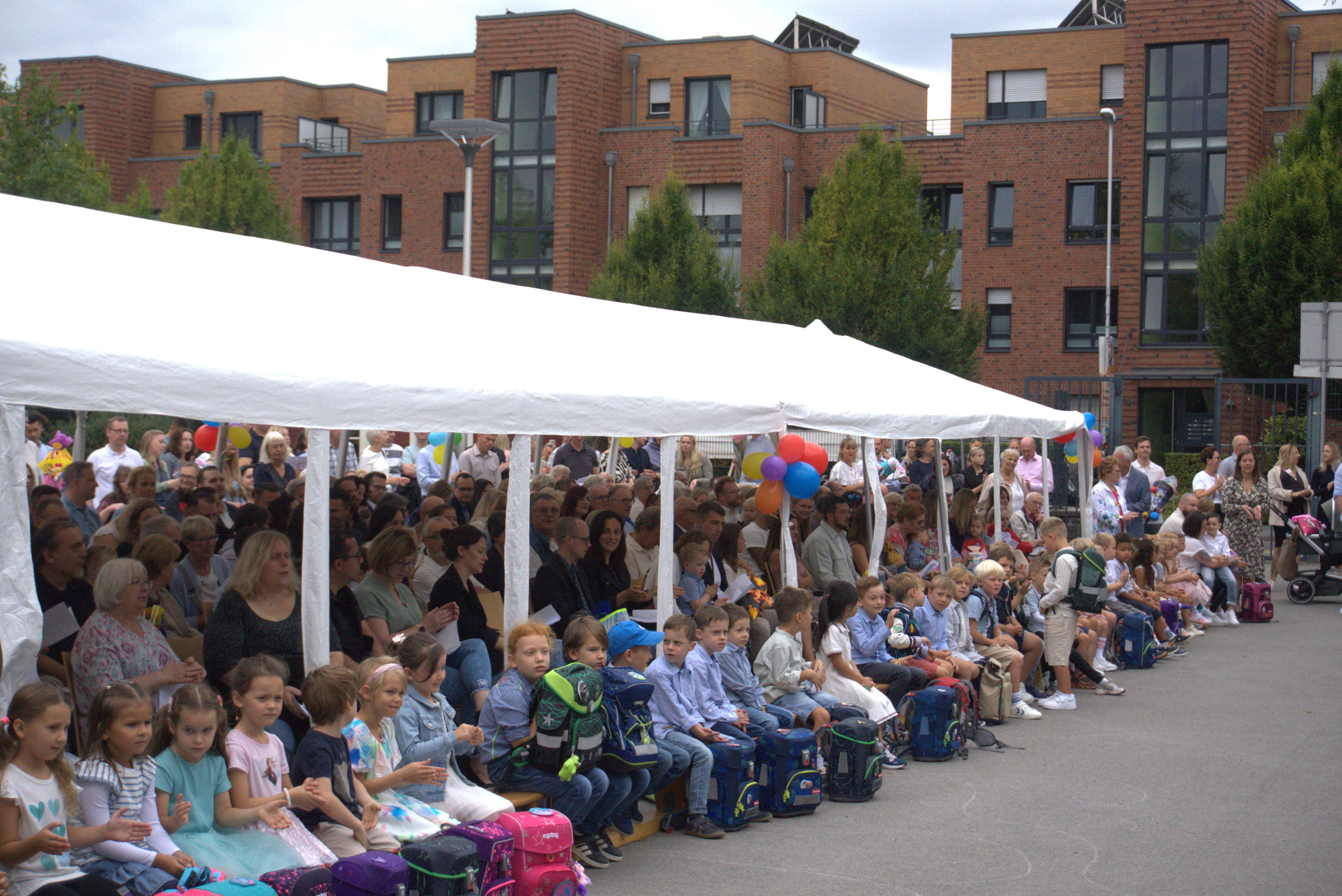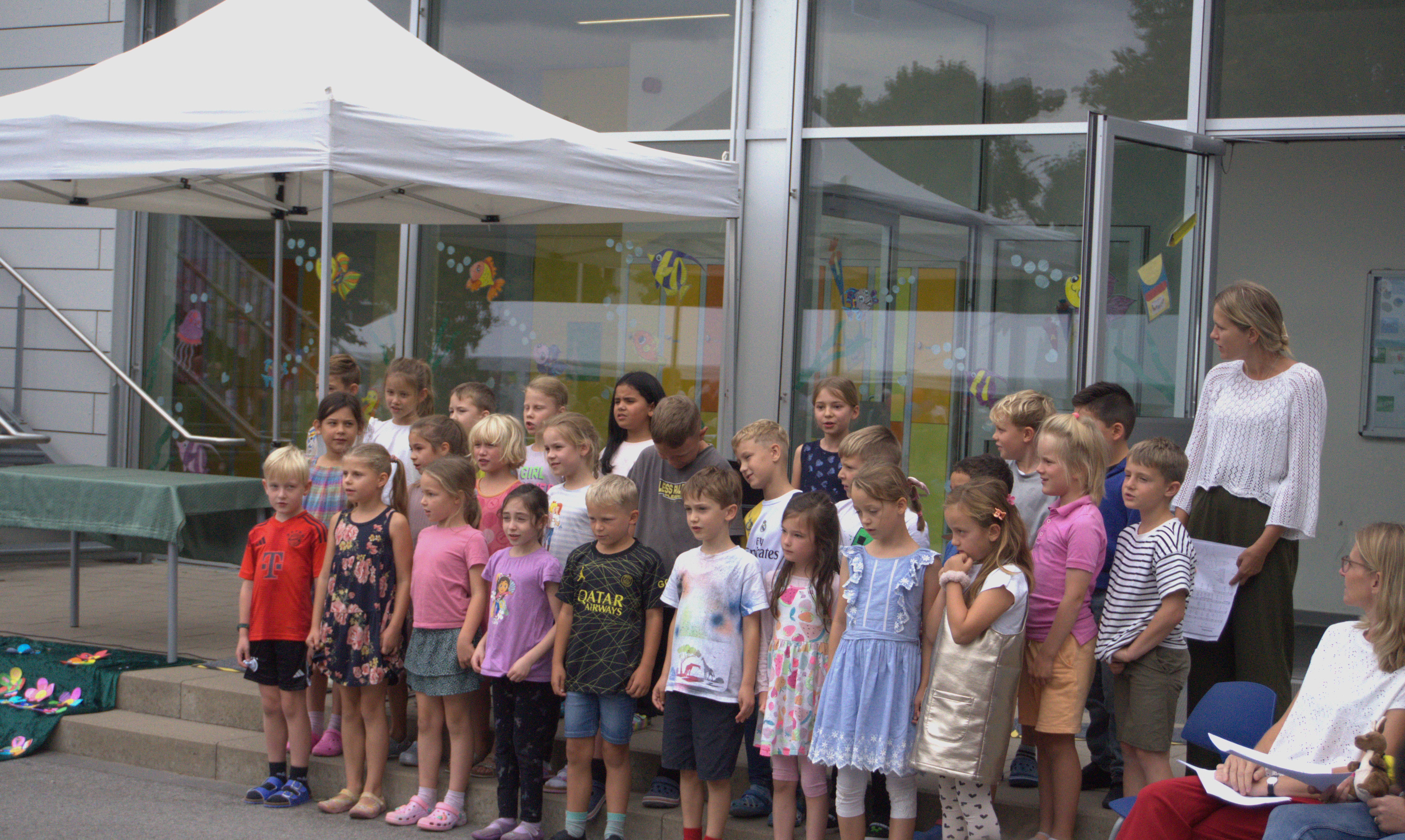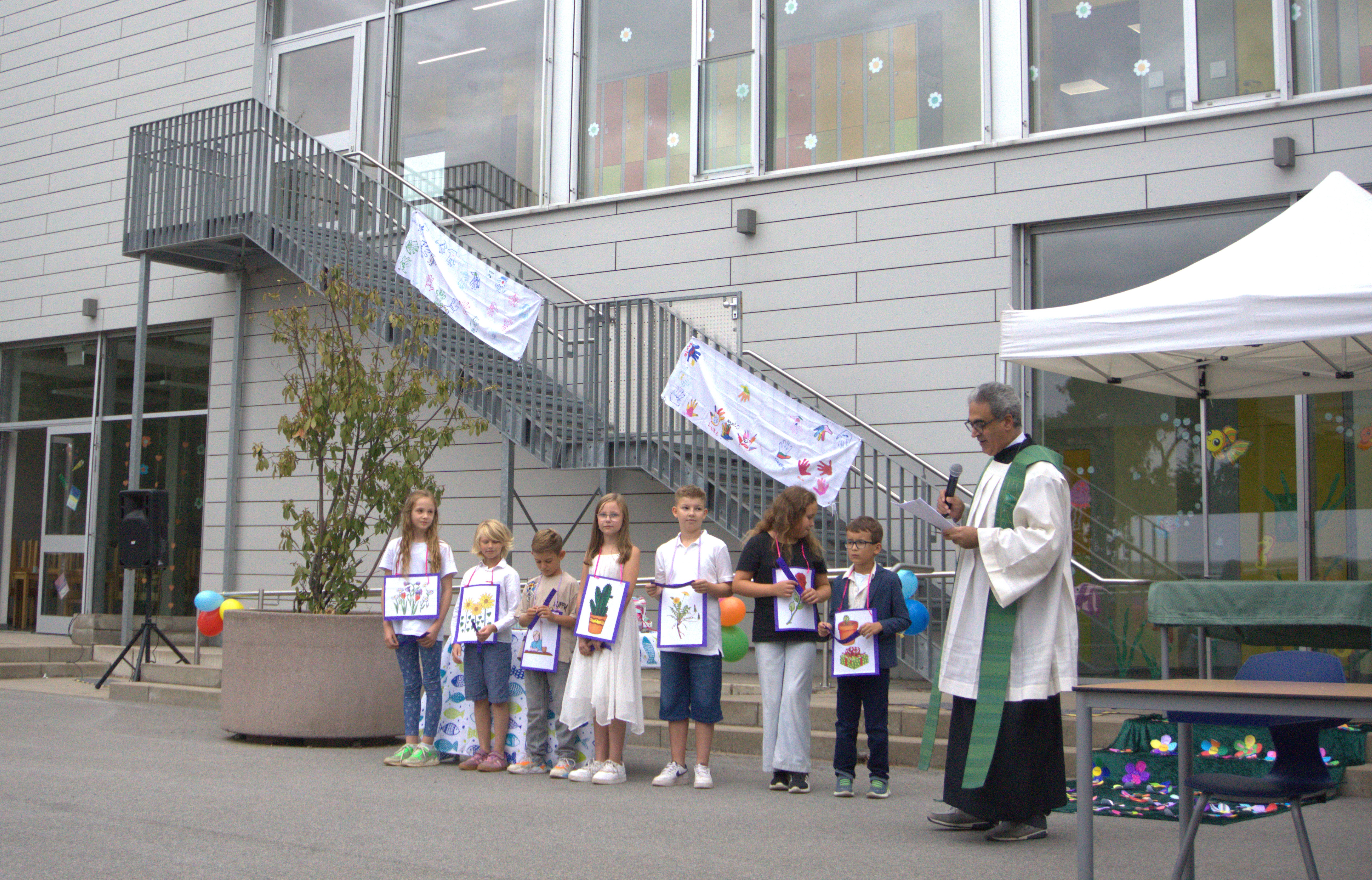 Mit viel Vorfreude und noch mehr Aufregung versammelten sich die Schulneulinge gemeinsam mit ihren Familien, um diesen besonderen Tag zu feiern. Die Veranstaltung begann um 10 Uhr mit dem Einschulungsgottesdient, den die Geschwisterkinder der Schulneulinge vorbereitet hatten. Das Motto dieses Jahr lautete: „Kinder sind wie Blumen – und Gott wie die Sonne“.