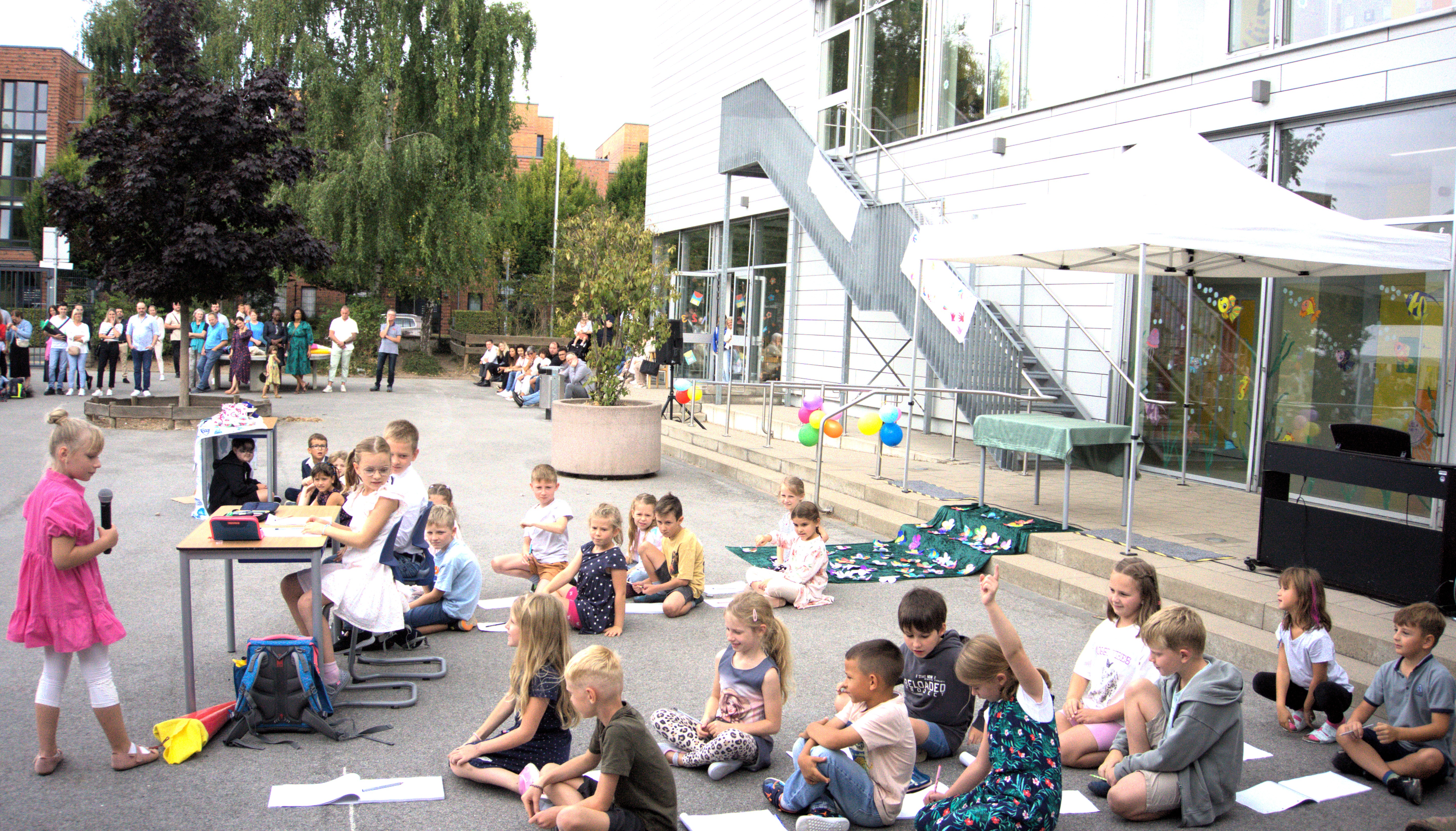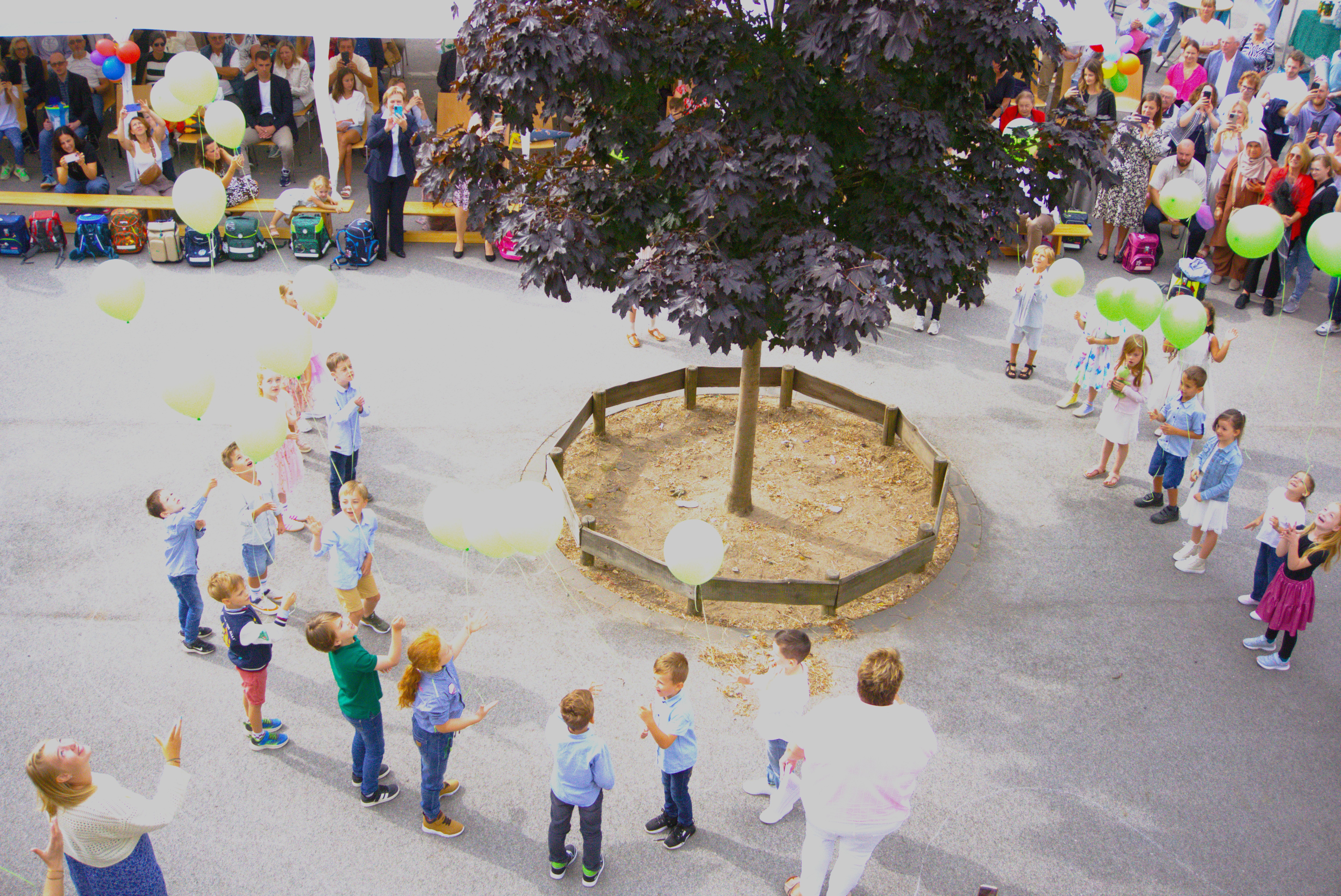 Im Anschluss wurden die neuen Klassenteams vorgestellt und die Klassenlehrerinnen der Kängurus und Schildkröten lasen eine Geschichte über die Klassentiere Kora und Lola vor. Nun wurden die aufgeregten Erstklässler*innen klassenweise aufgerufen und durften einen Luftballon mit all ihren Wünschen für den Schulbesuch steigen lassen. Anschließend gingen sie unter dem Applaus der Gäste gemeinsam mit ihren Klassenlehrerinnen zu ihrer allerersten Unterrichtsstunde ins Schulgebäude – ein aufregender Moment für die Kinder!