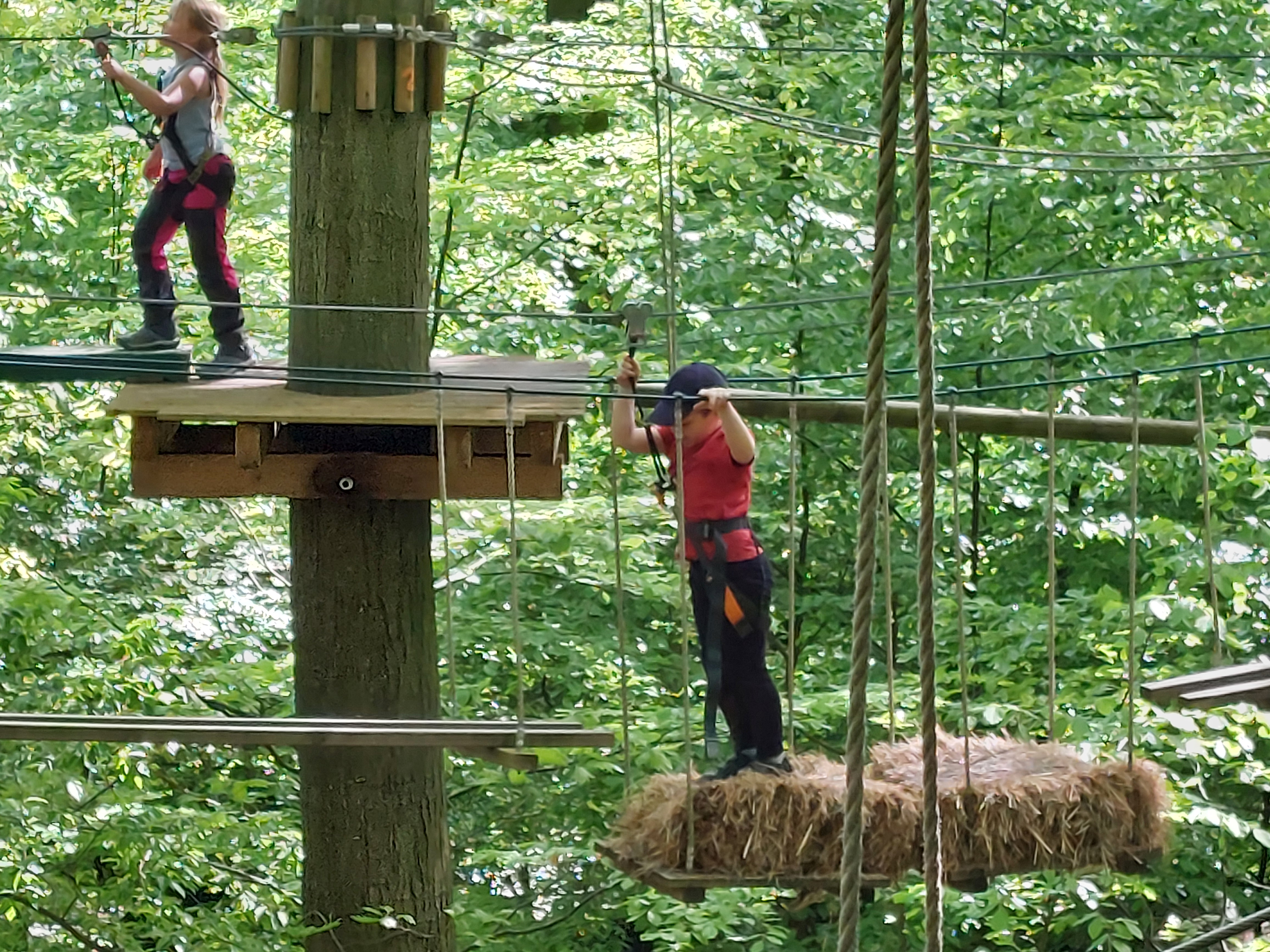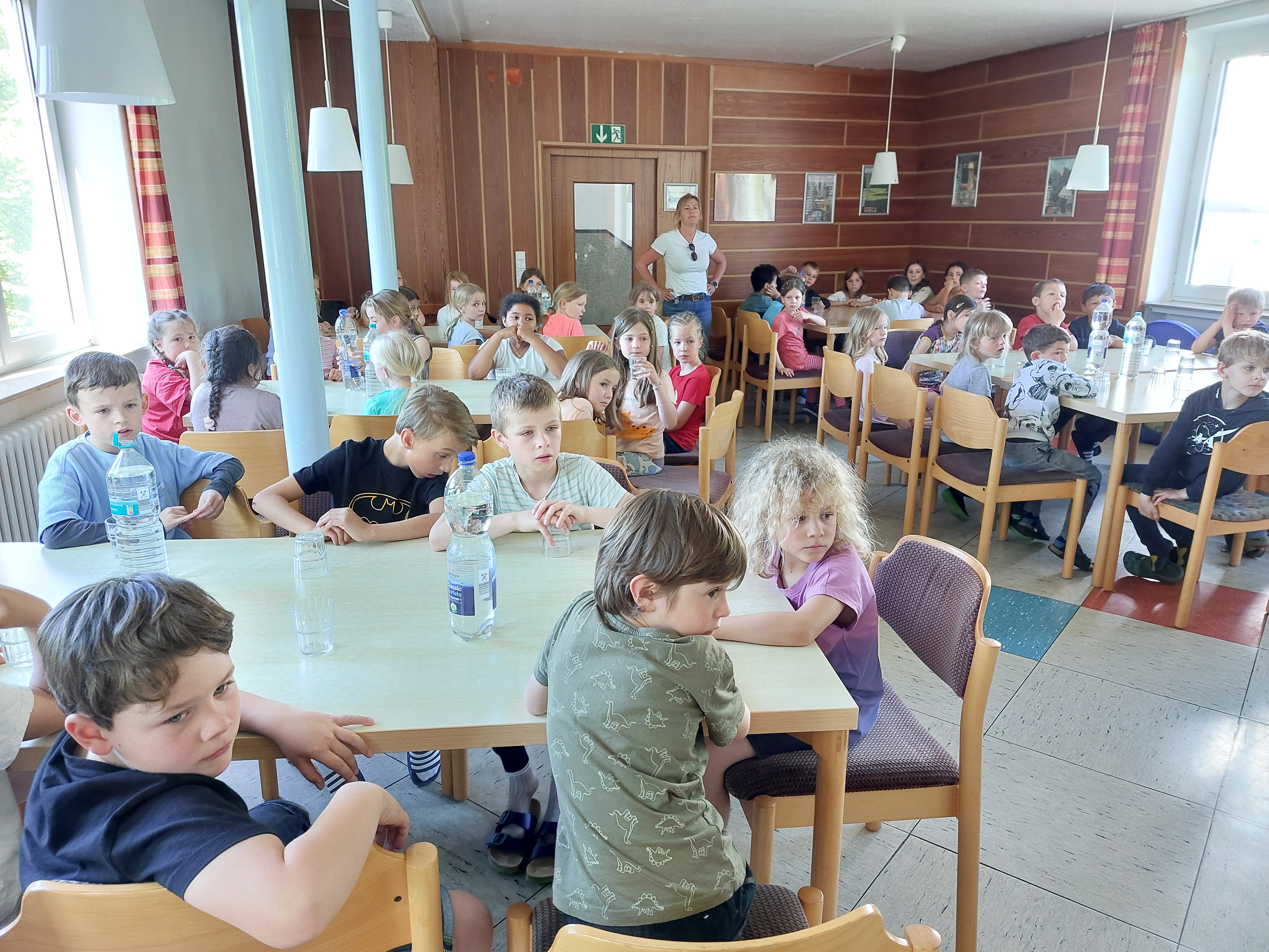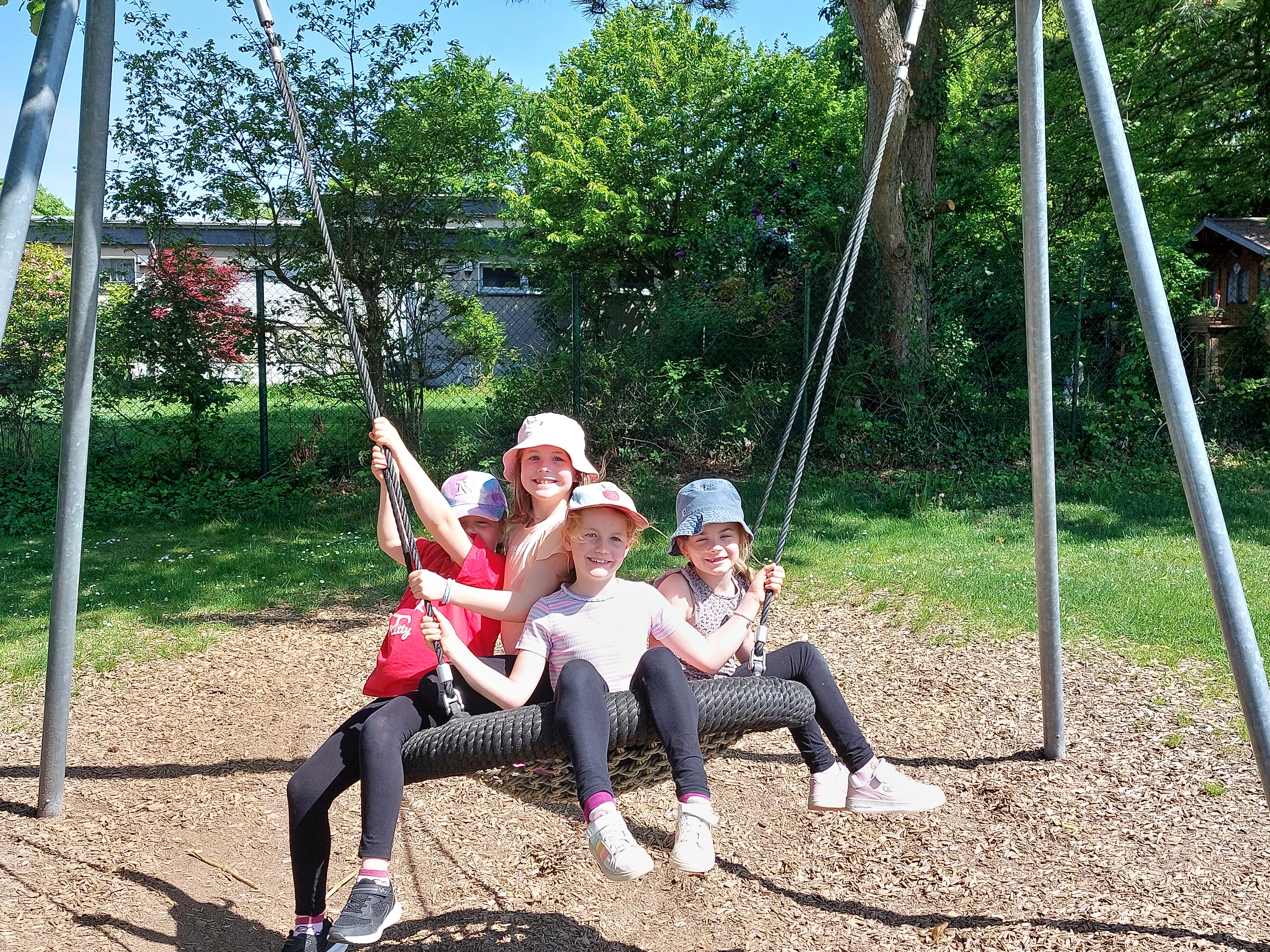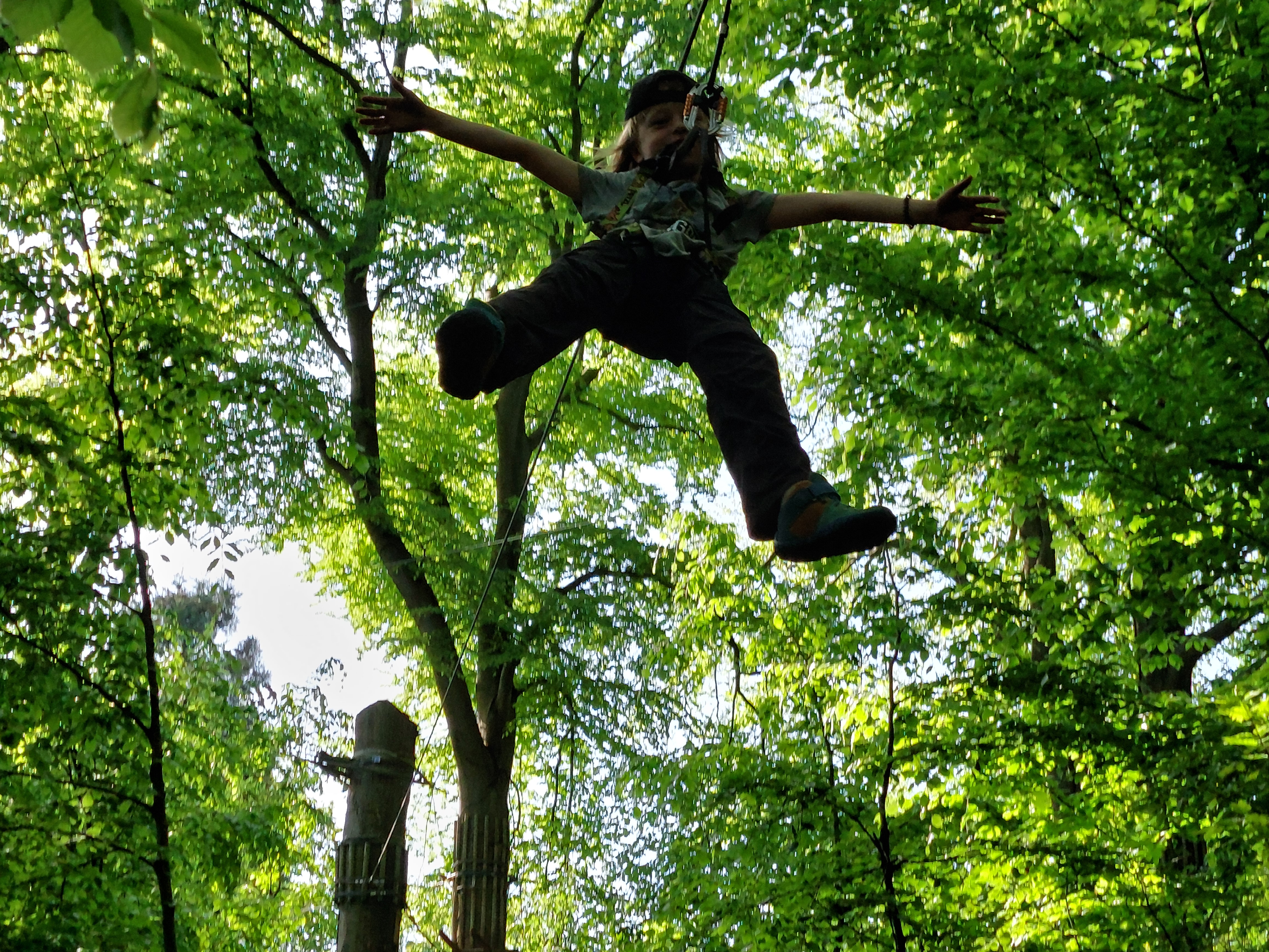 Für unsere zweiten Klassen ging es Ende April auf Klassenfahrt nach Velbert. Einen Tag und eine Nacht verbachten die Erdmännchen und Waschbären getrennt von zu Hause. Es hat richtig viel Spaß gemacht. Nach der Ankunft wurden zuerst mal die Betten bezogen, gemeinsam Mittag gegessen und dann ging es mit dem Bus nach Velbert Langenberg in den Kletterwald. Je nach Lust und Laune konnten die Kinder unterschiedliche Kletterparcours bewältigen. Die Kletterpartie wurde oft mit einem Freiflug entlang der Bäume gekrönt. Abends wurde dann noch eine Nachtwanderung gemacht und die Erdmännchen und Waschbären fielen nach einer Gute-Nacht-Geschichte müde ins Bett. Am nächsten Tag ging es nach dem Frühstück schon wieder nach Hause. Es war ein toller Trip mit viel Action, Spaß und guter Laune.